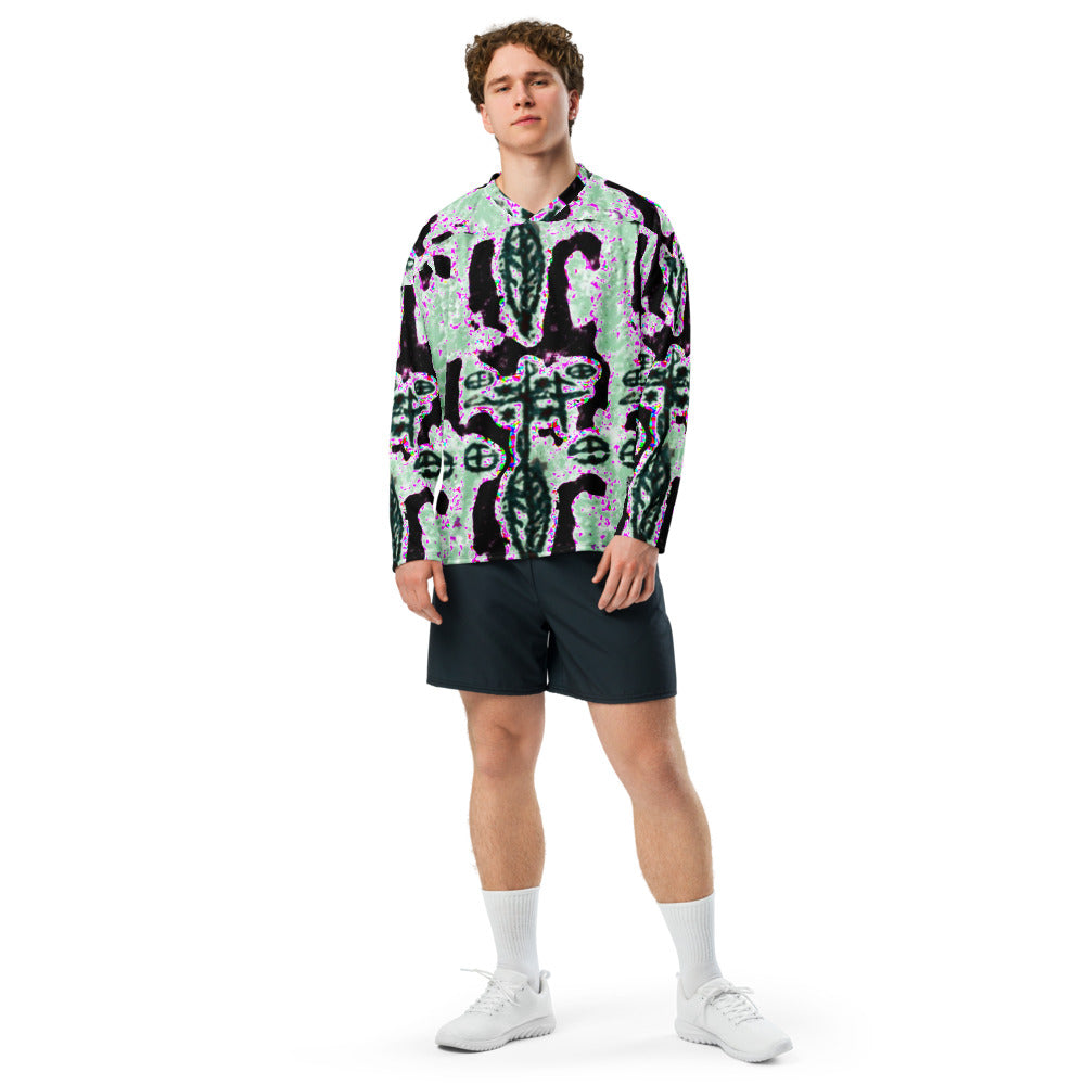 Upgrade your style with our Art Print Recycled Jersey. Made with high-quality jersey material, this fashion print is perfect for any outdoor adventure. Its original design adds a unique touch to your apparel, making you stand out from the crowd. Express yourself and be eco-friendly with this must-have piece.